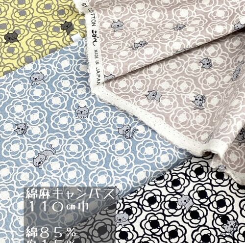 綿麻キャンバスの新柄が入荷しました😺ネコがお花の中でかくれんぼ色は4色ございますほどよい厚みなので、バッグやポーチにオススメです💕ぜひご覧下さい☺️