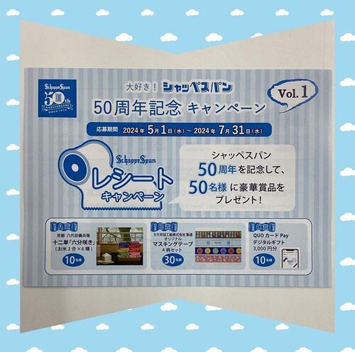 こんにちは西沢本店大村店です ソーイングするのにとっても大事な糸シャッペスパン そのシャッペスパンを、お買い上げいただき応募すると、当たるかも?♪───O(≧∇≦)O────♪ ✨シャッペスパン50周年記念キャンペーン✨応募期間は2024年5月1日〜7月31日です 只…